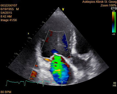 Mit einem entsprechenden Gerät, genannt „Doppler-Ultraschall“, kann der Blutfluss im Herzen sogar farbig dargestellt werden (Abb. 1). So lassen sich Herzklappendefekte und ihre Auswirkungen sehr deutlich darstellen. Auch die Pumpleistung (Ejektionsfraktion, auch Auswurffraktion genannt) des Herzens kann bestimmt werden.